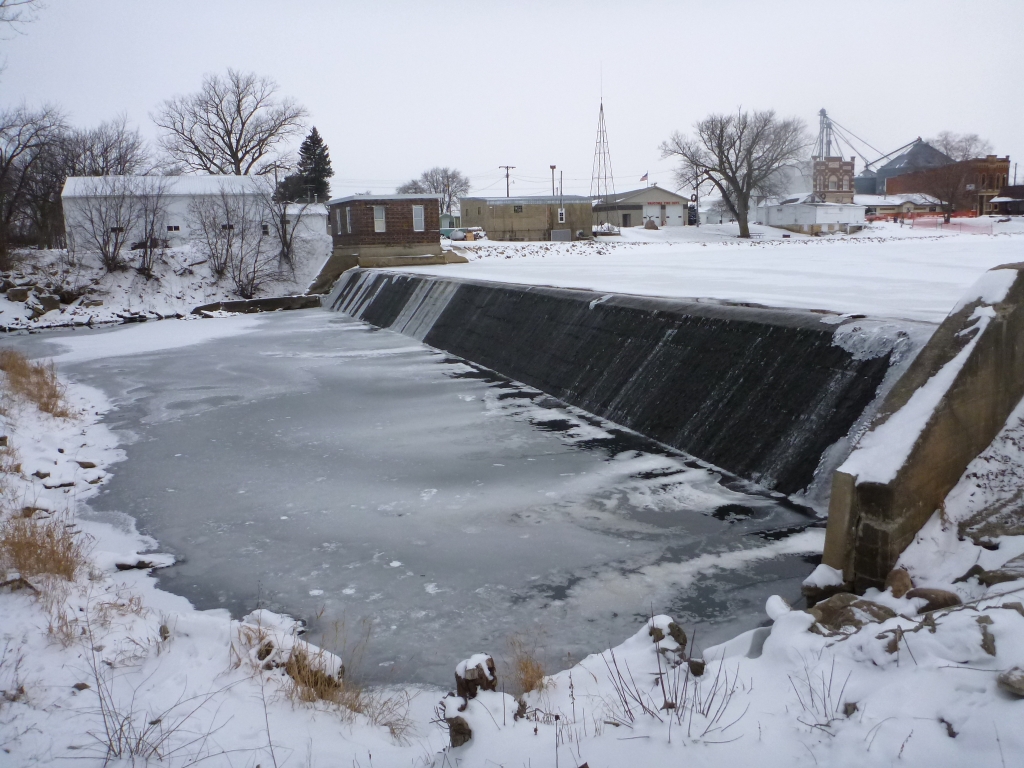 Portage: small lake above dam with City park along left river bank (park is bordered by 1st Ave SE and County Road V68). Paddler friendly boat ramp in park allows for easy portage. Short trail from boat ramp to below dam allows for simple access to river below dam.